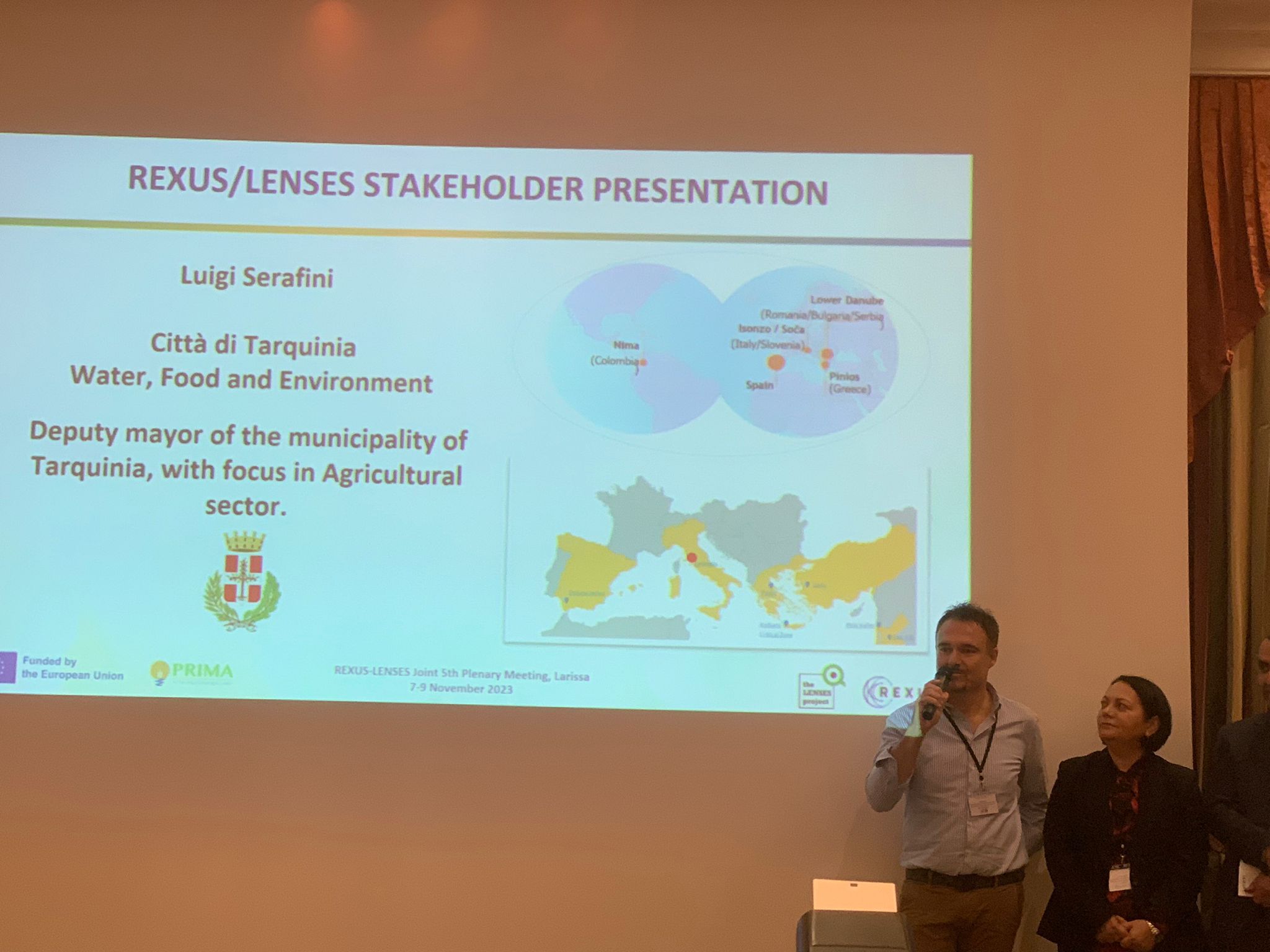 I rappresentanti dell’Amministrazione Comunale di Tarquinia presenti al “The Lenses Project”, ospiti del CREA, per il quinto Plenary Meeting Lenses/Rexus che si è svolto in Grecia nella città di Larissa dal 7 al 10 novembre scorso. Per il Comune di Tarquinia, città pilota per l’Italia nel progetto LENSES, che vede coinvolti 6 paesi del bacino del Mediterraneo, era presente il vicesindaco Luigi Serafini, nella sua veste di assessore all’agricoltura, che ha seguito il progetto del CREA sin dal suo avvio nel 2021.