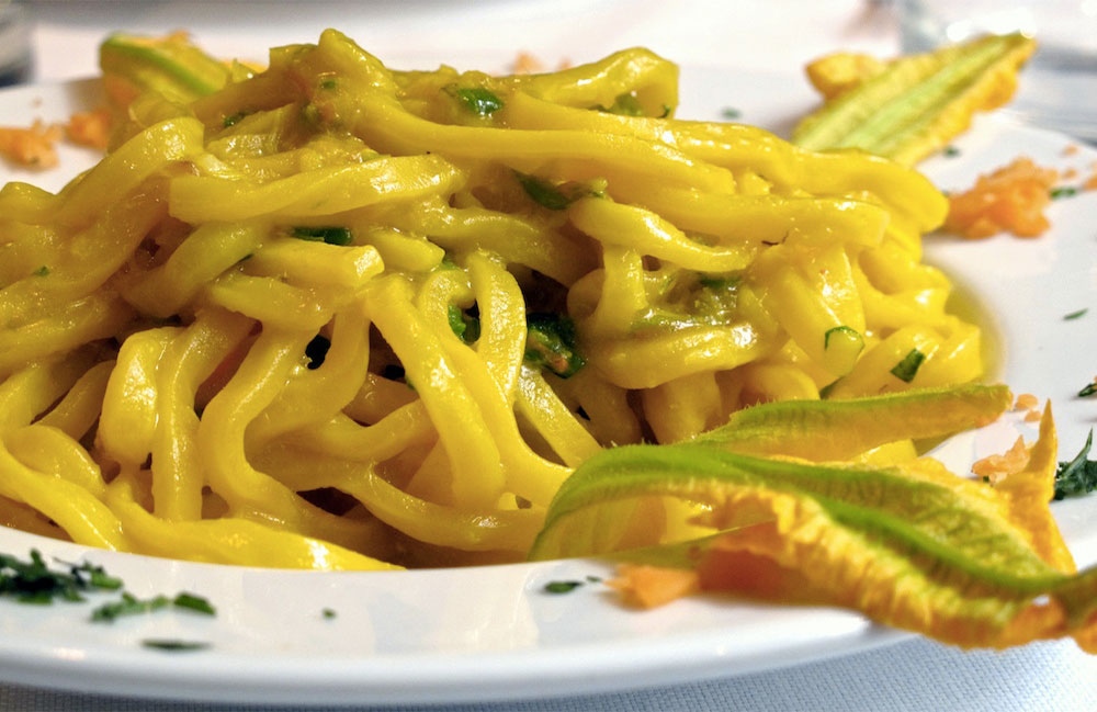 Tonnarelli con crema verde e bottarga: ricetta del martedì