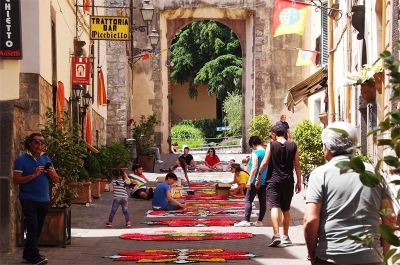 Torna l’infiorata a Bolsena. In occasione del Corpus Domini, domenica 19 giugno, un tappeto di petali colorerà e abbellirà le vie e le piazze del centro storico, che vedranno poi il passaggio dalla solenne processione con il Santissimo Sacramento e la Sacra Pietra. Tra i momenti più emozionanti delle celebrazioni ci sarà la preparazione dei quadri da parte degli infioratori. I lavori inizieranno la domenica mattina presto. L’intera comunità parteciperà all’allestimento dei quadri, realizzate con fiori di ginestre, fiordalisi, acacia, papaveri, rose, “fojone”, veccia, ortensie, calendule, garofani, margherite, e materiali di origine naturale come semi e foglie di varie tipologie. I colori predominanti in tutte le composizioni sono il giallo, il rosso ed il verde, di rara e preziosa bellezza è anche l’azzurro del fiordaliso. Vere e proprie opere d’arte che, per qualità artistica e tecnica, sono conosciute e apprezzate in tutt’Italia. Le celebrazioni del giorno del Corpus Domini si apriranno, la mattina, con le messe alle 8, alle 10 e alle 11,30 nella basilica di Santa Cristina. Alle 16, in piazza Matteotti, si svolgerà l’esibizione del Gruppo sbandieratori e musici città di Bolsena. A seguire, alle 17, nella basilica di Santa Cristina avrà luogo la messa presieduta dal cardinale Mario Grech e impreziosita dai canti del coro polifonico di Santa Cristina. Alle 18, partirà la processione con il Santissimo Sacramento e la Sacra Pietra, che percorrerà le strade e le piazze interamente coperte dai tappeti floreali. L’infiorata a Bolsena è legata all’evento che ha reso celebre la cittadina nel mondo: il miracolo dell’eucarestia ricordato e venerato come il prodigio eucaristico per eccellenza, avvenuto nel 1263 nella basilica di Santa Cristina. Nel 1264, Papa Urbano IV, spinto da questo avvenimento, emanò da Orvieto la “Bolla Transiturus” con la quale estese a tutta la cristianità la festa del Corpus Domini.