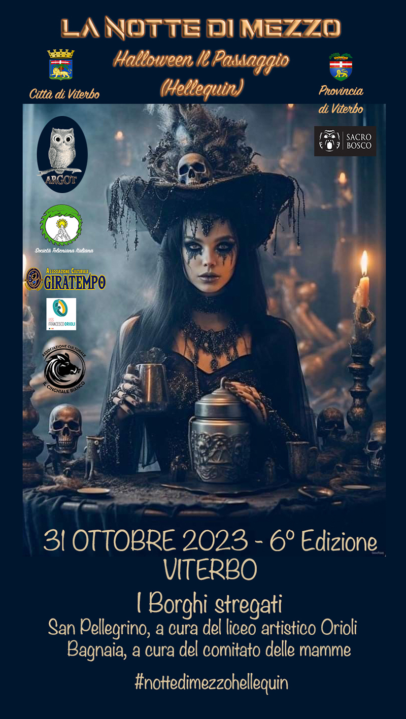 Torna la Notte di Mezzo Halloween Il Passaggio, sesta edizione, organizzata dall’associazione culturale Argot con il patrocinio di comune e provincia di Viterbo, in collaborazione con Società Tolkieniana Italiana, liceo artistico F. Orioli che realizzerà gli allestimenti di San Pellegrino, il centro sociale Pilastro con le streghe/befane del “Dolcetto  o Scherzetto”, l’associazione Giratempo e il Cinghiale Bianco. Quest’anno anche la collaborazione con il Sacro Bosco di Bomarzo presente nel programma di eventi della Notte di Mezzo con delle iniziative a tema. Sulla ruota del tempo il 31 ottobre rappresenta la porta di accesso all’autunno, al ciclo in cui la natura si addormenta nella terra per prepararsi a una nuova vita. I Celti la chiamavano Samhain. Il capodanno celtico. È la notte in cui i defunti ritornano, il mondo dei vivi e quello dei morti si incontrano, un momento in cui la dimensione fisica si riunisce a quella spirituale, e l’esistenza umana torna a manifestarsi nella sua interezza, come se il tempo e lo spazio non esistessero. Una notte carica di suggestioni di antica memoria, intorno a cui gravitano miti, leggende, tradizioni, racconti fantastici, ma che fa parte del patrimonio ancestrale di ogni civiltà, dove la celebrazione dei morti è un momento rituale immancabile. L’associazione Argot con la Notte di Mezzo dà vita a un contenitore di eventi  e si riappropria di una tradizione erroneamente etichettata come un’americanata, in quanto affonda le sue radici antichissime in Europa, in Italia, con usanze legate a questa particolare notte dell’anno, in cui con offerte alimentari, doni, maschere si esorcizzava la morte, e si cercava di conquistare il favore dell’ Aldilà e la benevolenza dei defunti custodi dei semi, per un propizio raccolto, preparando loro tavole imbandite, una sorta di questua ritualizzata a cui può ricollegarsi il popolare “Dolcetto e Scherzetto”. Non una festa americana, dunque, le vere origini di Halloween risiedono nel vecchio continente, dove già nel Medioevo si parla di Hellequin: anche in Italia si ha notizia di regioni in cui i bambini intagliavano zucche e le illuminavano per portarle in processione, mentre ovunque ricorre la celebrazione dei morti con usanze e dolci tipici. La Notte di Mezzo, riprendendo queste antiche tradizioni, dà vita a un format di eventi lungo il filo conduttore della narrativa fantasy e della figura delle strega, quale donna sapiente, profonda conoscitrice dei segreti della Natura con cui l’associazione rilancia il tema attualissimo della tutela dell’ambiente. Anche quest’anno la Notte di Mezzo trasformerà San Pellegrino in un borgo stregato: Il Palazzo degli Alessandri e piazza San Pellegrino diventeranno il mondo di Alice nel Paese delle Meraviglie, con sorprendenti allestimenti che tramuteranno la città in un mondo fantastico a cura del liceo artistico Orioli che realizzerà anche a piazza Scacciaricci la Sposa cadavere e Coraline, mentre a via Roma e a piazza delle Erbe, animazione e allestimenti. Anche quest’anno sarà presente il percorso della ceramica con sculture a tema, laboratori ed eventi di diverso genere. La manifestazione in questi sei anni ha conosciuto un grande successo di pubblico e di critica, anche per avere messo in campo il fortunato binomio arte e fantasia, grazie al contributo prezioso e determinante del liceo artistico Orioli  e contenuti di alto livello culturale, offerti dalla partecipazione di giornalisti, scrittori, studiosi italiani con incontri su miti, tradizioni, simbolismo, astronomia, templari, ecc. Un evento che cresce: dal centro cittadino la manifestazione si è ampliata alla frazione di Bagnaia grazie all’attività del comitato delle mamme che per la seconda edizione consecutiva trasformeranno il grazioso quartiere medioevale in un borgo stregato. Molte sono le iniziative del programma che sarà ufficializzato nei prossimi giorni. Info: nottedimezzo@gmail.com