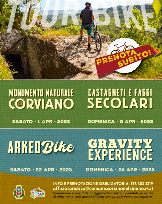 A partire dal 1° aprile per gli appassionati di mountain bike sono in programma bellissime escursioni alla scoperta del territorio di Soriano nel Cimino e delle zone limitrofe. Escursioni diverse, sia per caratteristiche che per difficoltà, perfette per accogliere al meglio l’arrivo della primavera. Tra le escursioni in programma spiccano l’Arkeobike ed il Gravity Experience. Nello specifico, l’Arkeobike sarà un’escursione dedicata alla scoperta dei principali monumenti storico-naturalistici della zona. Il Gravity Experience, riservato invece ai più esperti, è un’esperienza adrenalinica sui sentieri naturali. Ad accompagnare gli sportivi ci saranno esperte guide.