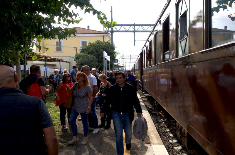 Oltre ai passeggeri del treno storico, tanti da occupare tutti i posti del convoglio, sono intervenuti molti altri cittadini e graditissimi e qualificanti ospiti, arrivati direttamente alla stazione: l’On. Emiliano MINNUCCI, l’On. Mauro ROTELLI, il Presidente della Provincia di Viterbo Pietro NOCCHI, il Sindaco di Gallese Danilo PIERSANTI, il responsabile per il turismo dell’Autorità di Sistema Portuale di Civitavecchia Malcolm MORINI. Dai loro interventi è emerso il crescente interesse, sia turistico che commerciale, per tutta la linea Civitavecchia CapranicaSutri Orte, con particolare menzione della tratta ancora munita di armamento, da CapranicaSutri a Orte, e con primo obiettivo quello di riattivare la linea da CapranicaSutri a Ronciglione.