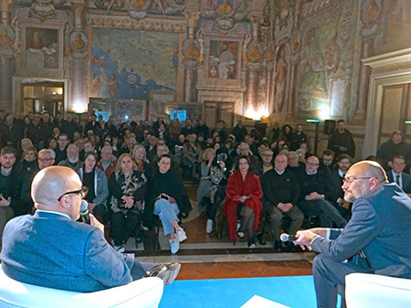 Sedute esaurite e posti in piedi nella Sala Regia di Palazzo dei Priori per la presentazione del libro di Gennaro Sangiuliano “Trump, la rivincita”. L’autore, che aveva scommesso sulla vittoria di Trump anche quando i pronostici lo davano per perdente contro Kamala Harris, offre il racconto, senza sconto né pregiudizi, delle vicissitudini personali, imprenditoriali e politiche di Trump, dalle origini familiari fino alla seconda vittoria alle presidenziali. Sangiuliano, che vanta altre pubblicazioni di taglio storico e politico, propone un’analisi approfondita del fenomeno Trump, inserendolo nel contesto più ampio dei cambiamenti globali, con l’unica certezza che “The Donald”, saprà ancora stupire il mondo. All’incontro hanno preso parte, tra gli altri, il deputato Mauro Rotelli, l’europarlamentare Antonella Sberna, i consiglieri regionali Daniele Sabatini e Giulio Zelli, il neo presidente di Ita-Lufthansa, Sandro Pappalardo, e tanti sindaci e amministratori del territorio.