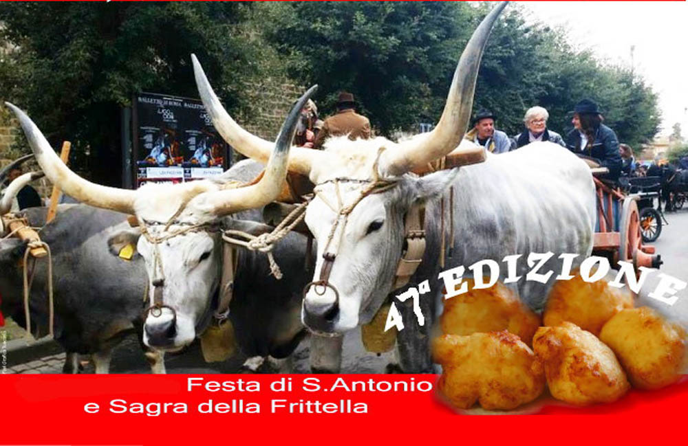 La giornata di festa prevede la benedizione degli animali e la sfilata dei butteri a cavallo. In occasione della ricorrenza di Sant’Antonio Abate si svolge anche la 47° Sagra della frittella al cavolfiore. L’ingrediente è il cavolfiore che viene impastellato con la farina, aromatizzato con un sospetto di cannella e affogato nell’olio bollente di un padellone.