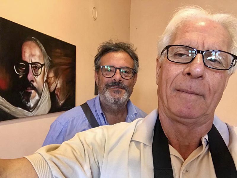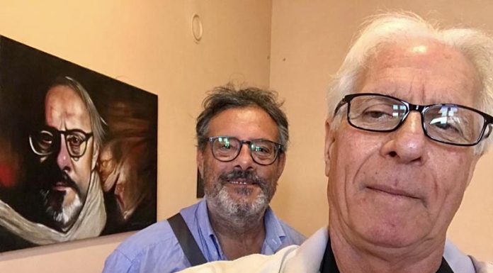 E proprio qui che  si scopre la sorpresa annunciata  dal maestro Trifolelli, l’opera del pittore Alessandro Scannella che raffigura chi scrive, l’artista romano di nascita e ormai cittadino di Vitorchiano  dove è il suo studio.