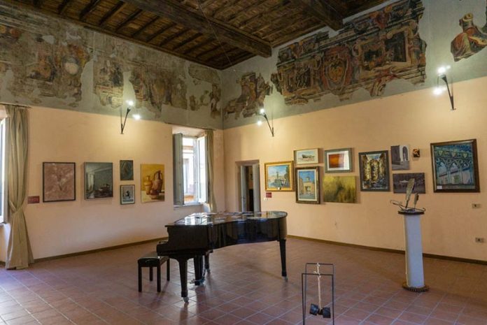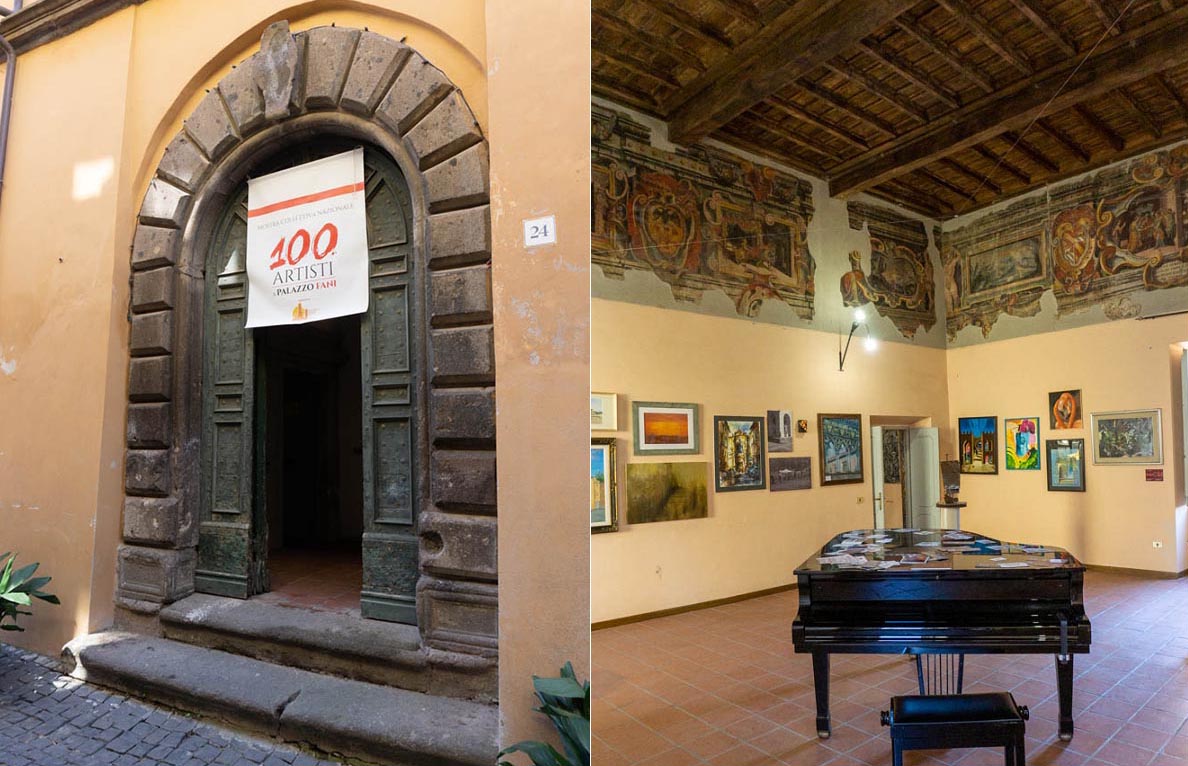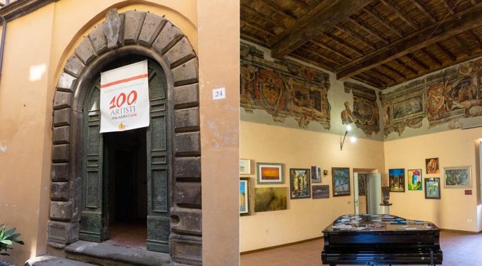 Palazzo Fani situato nel cuore del centro storico di Tuscania ci avvolge con una piacevole penombra , entriamo ed inizia la visita alla mostra,100 Artisti a Palazzo Fani curata da ACTAS, Associazione Culturale Turismo Arte Spettacolo di Tuscania, direttore artistico Giulio Patrizi ospitata nelle prestigiose sale di Palazzo  di Tuscania una dimora nobiliare del ‘500. Restano ancora  pochi giorni, per visitarla, chiuderà il 23 luglio l’ingresso  è gratuito.Vale la pena osservare le tante opere di artisti anche della Tuscia