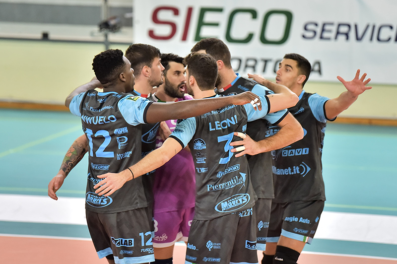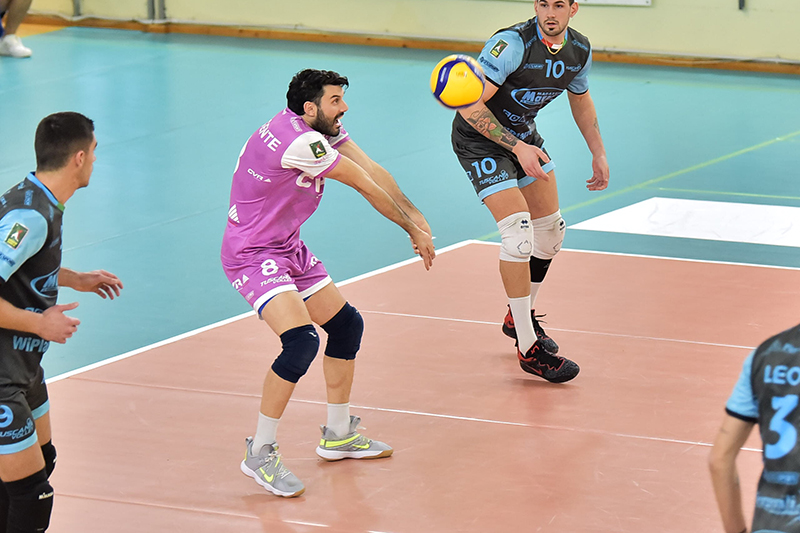 La quarta frazione parte punto a punto fino ai due errori di misura di Onwuelo e Sacripanti 8/5. L’attacco di Bertoli va a segno, 13/9, Passaro chiama il secondo time-out. Allunga ancora Ortona con il mani fuori trovato da Bulfon 18/12. La pipe vincente di Corrado seguita da un ace dello stesso sembra riportare sotto Tuscania 22/21. Bertoli mette a terra la palla slash che chiude set e incontro 25/22.