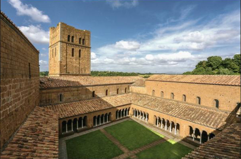 L’opera dell’uomo e quella della natura si fondono proprio come voleva San Benedetto da Norcia. Il monastero si affaccia sulla valle del fiume Marta. La presenza di sorgenti ha sicuramente incoraggiato gli insediamenti fin dall’epoca etrusca, romana e medievale.