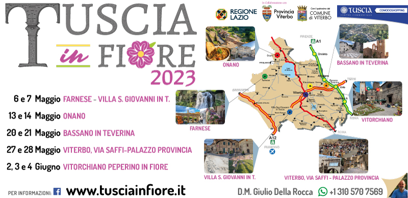 Sabato 13 e domenica 14 maggio Tuscia Fiore si sposta a Onano. La Tuscia è… In fiore. Il primo festival della Tuscia, la meravigliosa terra nascosta tra Roma e Toscana, sbarca su Rai 1, nel programma È sempre mezzogiorno, condotto da Antonella Clerici. Alla nostra terra serve solo di farsi notare grazie ai colori dell’arte e dei fiori. Il festival dei fiori, dell’allegria e della gioia di vivere, per tutte le età. Nato dalle ceneri di San Pellegrino in Fiore, il festival della Tuscia, grazie alla dicotomia tra la pietra locale chiamata peperino e i fiori, esalta questa terra e la presenta nella sua splendida magnificenza.