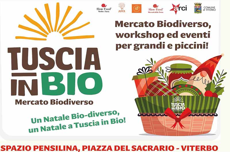 La manifestazione NATALE A TUSCIA IN BIO, realizzata con il patrocinio e il contributo del Comune di Viterbo, è organizzata da: Cooperazione Contadina, Mercato della Terra Slow Food di Viterbo e Tuscia APS, Aucs onlus, Arci Viterbo, Slow Food Viterbo e Tuscia.“