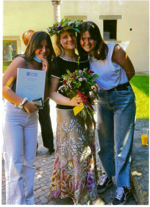 Nelle foto, due modi di utilizzare l’alloro: in cucina con le anguille del lago di Bolsena (cover) e all’Università per le neo-laureate (in alto).