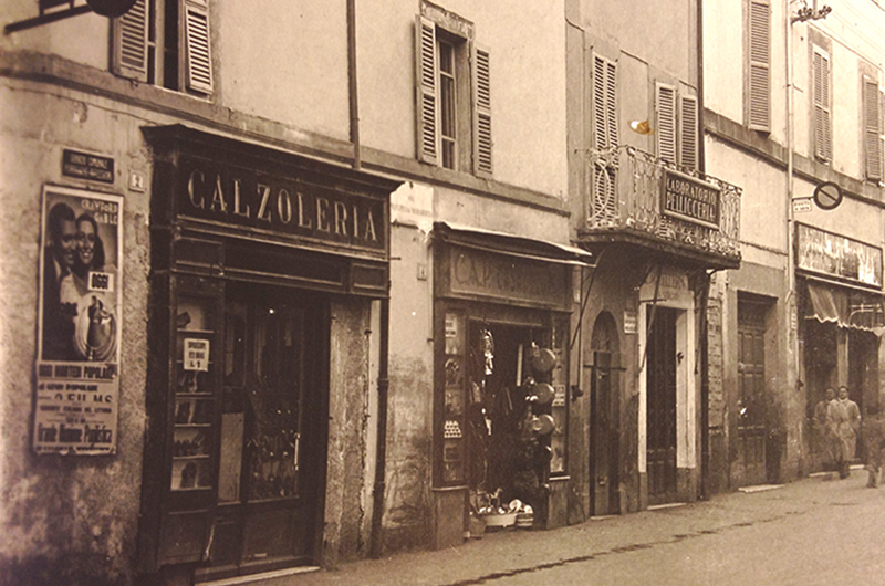Nella foto, via Principessa Margherita (oggi via Matteotti) a Viterbo, nei primi anni Trenta, con una lunga serie di botteghe