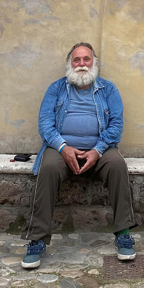 Sa tutto e di tutti la signora Marina che staziona con il banchetto artigianale di fronte al suo piccolo laboratorio dove modella e dipinge. In un cartello posto all’interno della bottega si legge “… con le mani ella crea anche la più pazza idea e ogni cosa che lei produce brilla di una propria luce”. Sta a Calcata da mezzo secolo, come molti altri artisti che dalla metà degli anni Settanta, dopo il trasferimento della popolazione in altro sito, hanno preso a frequentare e ripopolare il borgo vecchio restaurando le vecchie abitazioni, aprendo piccoli atelier, vivacizzando l’abitato che altrimenti sarebbe scomparso.