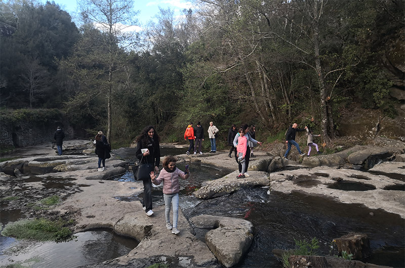 Nell’aria vaga l’audio gradevole di “uccellacci e uccellini” di varie taglie e colori, sul mormorìo dell’acqua che salta, cade, scivola, serpeggia, tra rocce nerastre di solida fattura vulcanica, vestite di muschi e licheni. Ambiente ideale per il “Battesimo” nel film di cui dicevamo, con la partecipazione di attori scelti tra la popolazione locale, come avvenne per altre riprese a Tuscania, sempre nel Viterbese, e in varie parti del sud Italia.