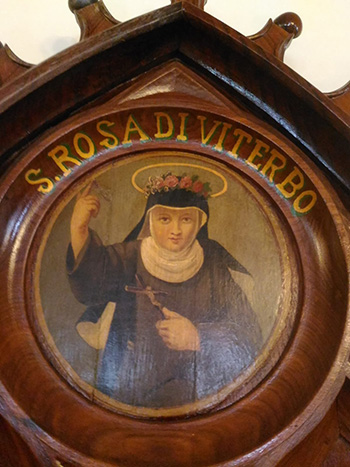 Nel refettorio del monastero delle suore francescane missionarie del Sacro Cuore di Gemona nel Friuli si trovano le immagini di santa Rosa di Viterbo, di santa Giacinta Marescotti (è scritto Mariscotti) e di san Bonaventura, tutti e tre originari della Tuscia viterbese, che insieme ad altre decorano gli stalli lignei neogotici ricostruiti dopo il terremoto del 1976. In particolare il volto di Rosa è molto simile a quello della giovinetta raffigurato nella tela settecentesca di anonimo custodita nel Museo del Colle del Duomo di Viterbo.