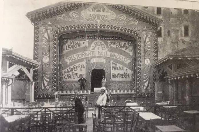 Paola Pucciatti che segue questa rubrica con inaspettato interesse, mi fa sapere – a proposito dell’hotel Antico Angelo di Viterbo di cui ho parlato la settimana scorsa – di essere nipote di Giuseppe Moscucci proprietario di quella struttura alberghiera nei primi decenni del secolo scorso, subentrato al padre Nazzareno. Giuseppe la tenne fino al 1926 quando assunse la gestione del Nuovo Angelo a metà via dell’Orologio Vecchio. E mi invia una foto di quegli anni, forse nota ad alcuni dei viterbesi più stagionati, che inquadra un Caffè-Teatro all’aperto dell’epoca, sistemato nel cosiddetto spiazzo Garbini di Viterbo, già stazione di partenza dei bus prima della guerra, oggi trasformato in parcheggio. Per intenderci siamo all’inizio di via San Bonaventura presso porta Murata.