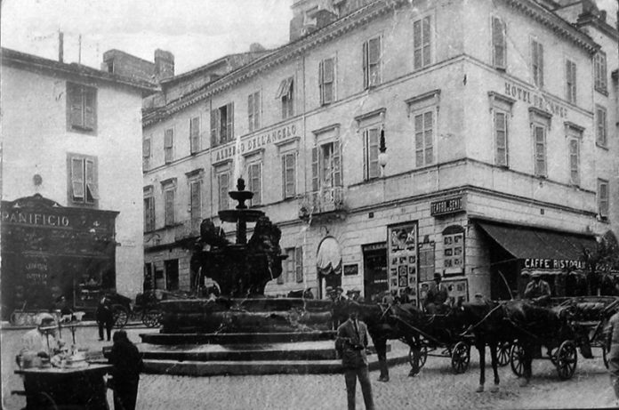 Nella foto cover, Viterbo piazza delle Erbe con l’albergo Antico Angelo