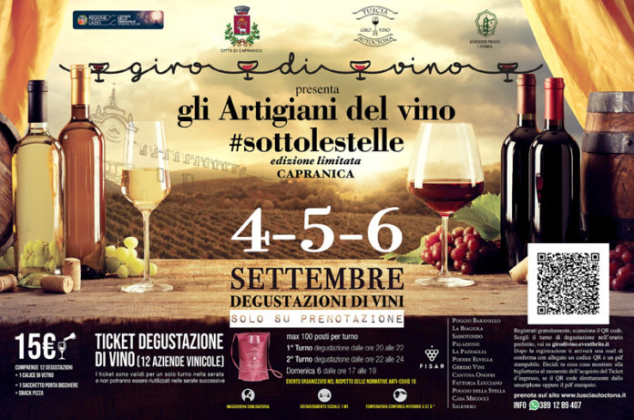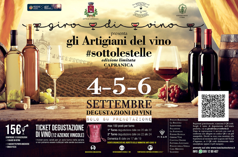 Un’edizione speciale, questa di TusciAutoctona-GiroDiVino, anche perché realizzata in un contesto condizionato per il quale il Comune di Capranica metterà rigidamente in campo tutte le normative anti-Covid19, in grado di garantire lo svolgersi della manifestazione in totale sicurezza. Il tutto grazie alla volontà ferrea e all’impegno profuso dall’amministrazione comunale, coadiuvata dalla Pro Loco e dall’Associazione Tusciautoctona, in collaborazione con la FISAR Delegazione di Viterbo e grazie alla collaborazione e consulenza di Raffaele Marini, selezionatore, scrittore e Consulente eno-gastronomico.