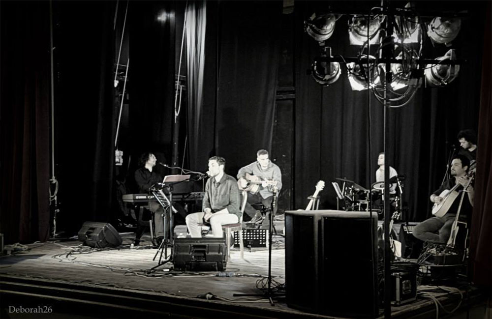 La tenda del sipario si è aperta alle 21.36 sulle note della tagliente e puntuale chitarra di Antonio d’Apote alle prese con la canzone simbolo per gli amanti di Pasolini “Una storia sbagliata”. Il tutto accompagnato dai colori caldi del pianoforte di Massimiliano Pioppi, conosciuto nell’ambiente per le incredibili capacità creative e tecniche. Si aggiungono l’impeccabile Antonello Pacioni, alle prese con Mandolino, chitarra e Bouzuki, Edoardo Fabbretti tra la batteria e alle percussioni un giovanissimo e talentuoso Glauco Fantini. È la voce di Luca Cionco l’ultimo strumento in aggiunta che si muove nello stesso registro dell’autore di “Verranno a chiederti del nostro amore”, quella voce che in molti confondono spesso con quella di Fabrizio de André.