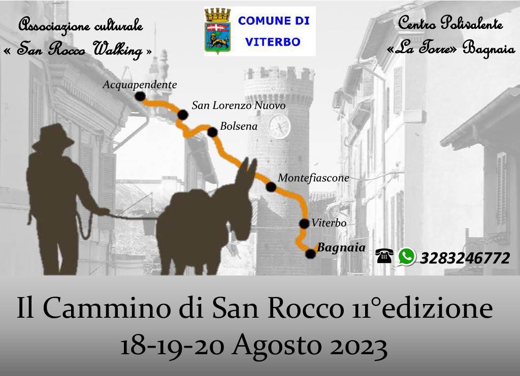 Il Cammino di San Rocco, in questi ultimi anni, oltre ad affermarsi come uno dei Cammini più interessanti, è stato inserito nei circuiti dei Cammini nazionali, soprattutto per le sue caratteristiche uniche. Camminare sulle orme di San Rocco è un modo per riscoprire parte della nostra storia,quella delle nostre radici che non dobbiamo perdere e alle quali dobbiamo sempre guardare. Il Cammino di San Rocco, arrivato alla 11° edizione, è nato dall’esigenza di recuperare una tradizione che gli anni stavano spegnendo: uno strumento adatto ed efficace per incentivare il turismo lento e di qualità. Un esperienza visiva, naturalistica, enogastronomica: elementi alla base e insieme punto di forza del “Cammino di San Rocco”. Il tragitto, che in questa edizione si articola lungo la Via Francigena, da Radicofani, Acquapendente, Bolsena, Montefiascone alla Frazione di Bagnaia, garantisce una visione d’insieme di quello che la provincia è in grado di offrire: un affaccio curioso sul territorio dal quale ognuno può tracciare, in un secondo momento, il suo personale itinerario in base all’aspetto che si desidera approfondire, sia esso storico, culturale, agroalimentare. Per questo il Cammino di San Rocco è riscoperta e valorizzazione del nostro  territorio, con soste dedicate alla scoperta di innumerevoli meraviglie storico artistiche che si incontrano lungo il percorso. Il Cammino di San Rocco è soprattutto lo stare insieme il 18-19-20 agosto, unendo diverse generazioni di Pellegrini, con fasce di età che sembrano cosi lontane ma che invece, unite, diventano la vera forza di questo splendido Cammino in terra di Tuscia.