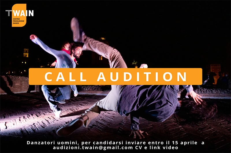 Twain Centro di Produzione Danza cerca nuovi interpreti uomini per inserimento in compagnia (produzioni in repertorio e nuove produzioni con retribuzione da CCNL), primo periodo di lavoro settembre/ottobre 2025 con calendario successivo in via di definizione.