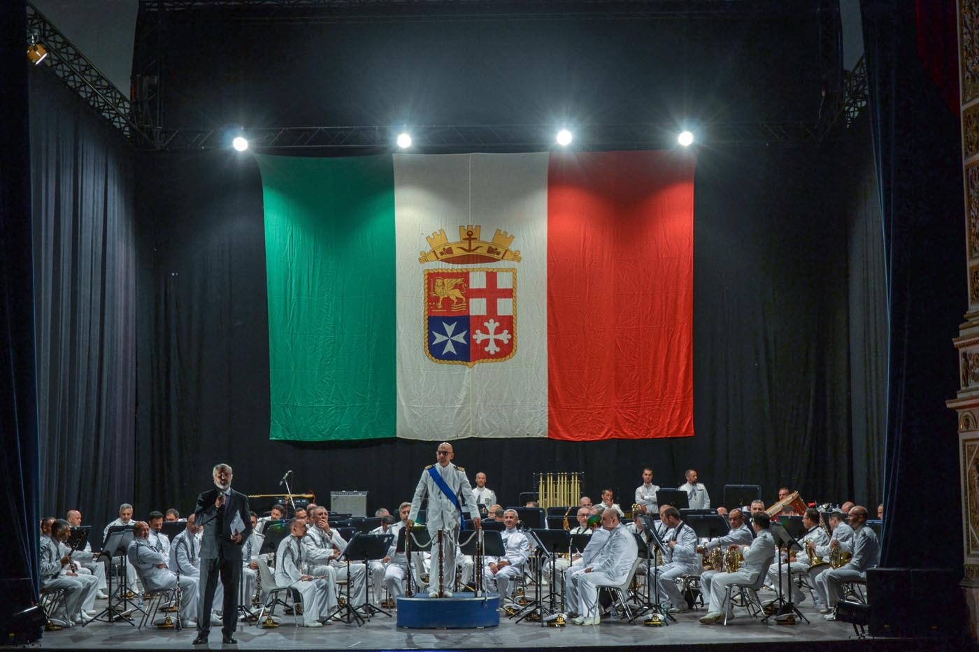 Gli spettatori che hanno gremito platea e palchetti hanno assistito al concerto inaugurale tenuto dalla Banda della Marina Militare, diretta dal Maestro Capitano di Fregata Antonio Barbagallo. Un programma musicale vasto che ha ridato vita all’Unione sulle note dell’Inno di Mameli, per poi regalare al pubblico componimenti di Giuseppe Verdi, Gioacchino Antonio Rossini, non facendo mancare un omaggio a Ennio Morricone e ai Pink Floyd.