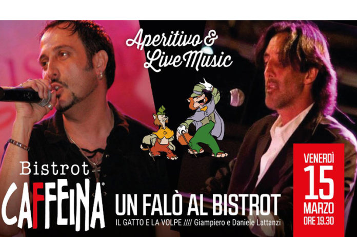 Giampiero e Daniele Lattanzi, con il duo “Il gatto e la volpe” ci attendono questo venerdì 15 marzo al Bistrot Caffeina, dalle 19:30, per accompagnarci durante questo nuovo aperitivo musicale.