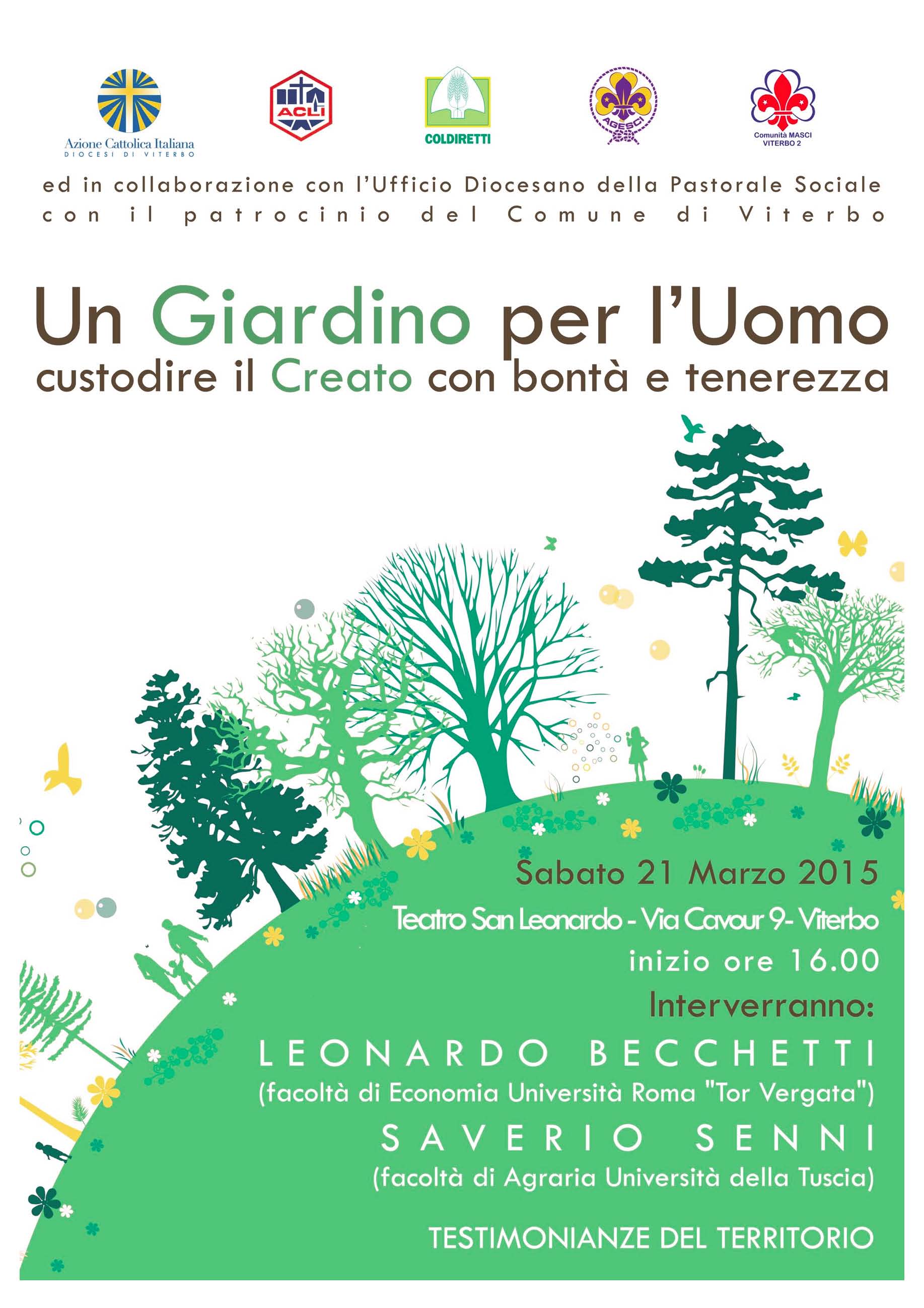 È questo il titolo dell’appuntamento – in programma il 21 marzo alle ore 16,00 al Teatro San Leonardo di Viterbo – ideato dall’Azione cattolica diocesana insieme ad Acli, Agesci, Masci e Coldiretti per focalizzare l’attenzione sull’importanza della salvaguardia del Creato.