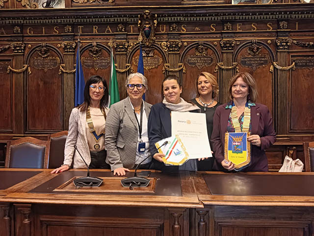 Alla conviviale, presso il ristorante la Chimera nel cuore medievale della città, si e svolto il cerimoniale rotariano con la partecipazione della vicepresidente del Parlamento europeo Antonella Sberna, che ha sottolineato l’importanza e il valore del Rotary sul territorio, ringraziando la presidente Rosita Ponticiello per l’invito e per il lavoro che svolge. Ha poi illustrato una serie di iniziative europee alle quali il Rotary potrebbe aderire.