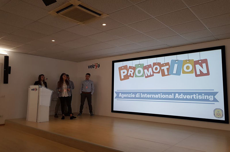 Durante il primo semestre dell’a.a. 2018-2019 (ottobre-dicembre 2018) gli studenti hanno svolto parte del loro percorso formativo presso il Campus Vetrya realizzando, divisi in gruppi, dei progetti che hanno abbracciato e integrato le nozioni apprese nei tre diversi insegnamenti coinvolti (marketing internazionale, qualità e relazioni con i clienti, organizzazione dei sistemi informativi aziendali) su temi proposti dall’impresa.