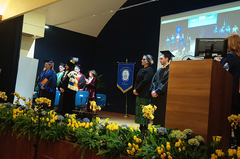 Tre C: Cura, Creatività, Coraggio, che possono essere sintetizzate in una sola C, grande e onnicomprensiva. Tre C che erano state già indicate il giorno dell’insediamento lo scorso 3 novembre, e che ieri pomeriggio,17 marzo, sono state confermate e rafforzate, in occasione dell’apertura dell’Anno Accademico 2025/2026. Il primo anno per la Rettrice, Tiziana Laureti, al vertice dell’Università della Tuscia. La C rappresenterà la stella polare, la chiave di riferimento per il quinquennio del suo mandato. Venti minuti per esporre nei dettagli il programma, presso l’Auditorium Carlo Azeglio Ciampi, dinanzi alle massime istituzioni politiche, amministrative, militari, di categoria e alla presenza dei Rettori di diversi atenei. Un discorso iniziato con l’analisi storica e culturale del momento che stiamo attraversando per poi calare nel particolare. “Scegliere l’università – ha sottolineato – è scegliere gli strumenti perchè spesso ciò che trattiene non è la mancanza di talento ma il peso di barriere culturali e sociali”. “In questi giorni – ha aggiunto – i primi monitoraggi sembrano indicare una flessione nazionale degli studenti intorno al 2 per cento, un calo che risente certo della crisi demografica, ma che denota pure una incapacità più profonda nei percorsi di accesso allo studio e al lavoro. Solo il 52 per cento dei neodiplomati si iscrive all’università e la quota negli anni successivi scende al 34. E’ il segno di un malessere che inizia prima dell’iscrizione all’ateneo. In altre parole, perdiamo competenze prima ancora di poterle formare. Nell’anno accademico 2025/2026 la nostra università fa registrare una crescita, quasi dell’uno per cento di matricole e di circa il cinque di iscritti. Sono dati che ci incoraggiano e insieme ci responsabilizzano. Ed allora ecco che Cura significa occuparsi al meglio degli studenti”, con Coraggio e Creatività, le altre due C. “Negli ultimi anni la nostra università è cresciuta in modo significativo e siamo al centro delle nuove sfide che la società ci pone dinanzi”. “Dobbiamo costruire una capacità interna di progettazione per trasformare il merito in continuità d’eccellenza di sistema. In definitiva, dobbiamo costruire alleanze nuove, mettere in rete le esperienze, condividere strumenti, costruire principi per governare le trasformazioni tecnologiche senza rinunciare a responsabilità”. Un pacchetto di lavoro che magari in questo momento rischia di essere condizionato da avvenimenti geopolitici, come ha rilevato il giornalista e storico, Paolo Mieli, invitato da Unitus a tenere una lectio magistralis. “Non sono tempi questi – ha rilevato – che si fermano in due settimane. Una pace non sarà fissata in un giorno solo, ma sarà costruita di anno in anno e arriverà soltanto quando saranno riconosciuti le ragioni e i torti degli altri”.