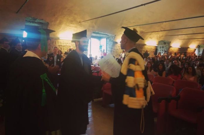 Dopo una lunga attesa, si è svolta nella movimentata mattinata dell’11 giugno la cerimonia per la consegna dei diplomi delle lauree magistrali e triennali agli studenti dell’Università degli Studi della Tuscia. Inizialmente prevista al Teatro dell’Unione, la cerimonia è stata spostata nella splendida cornice di Palazzo Papale nella sala del Conclave, a causa di un guasto elettrico nella location decisa inizialmente. Presenti sia la mattina, che il pomeriggio dalle 15, il magnifico rettore Alessandro Ruggeri, l’assessore ai servizi sociali Antonella Sberna, i direttori dei dipartimenti DAFNE, DEB, DEIM, DIBAF, DISTU E DISUCOM, tutti i neolaureati e le rispettive famiglie presenti per sostenere e festeggiare i ragazzi.
