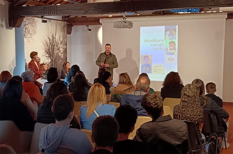 La finalità dell’iniziativa è stata condividere con i ragazzi e con i docenti un percorso di conoscenza e, in seguito, di acquisizione delle nozioni basilari della lingua dei segni italiana con la docente Michela Ortolani.