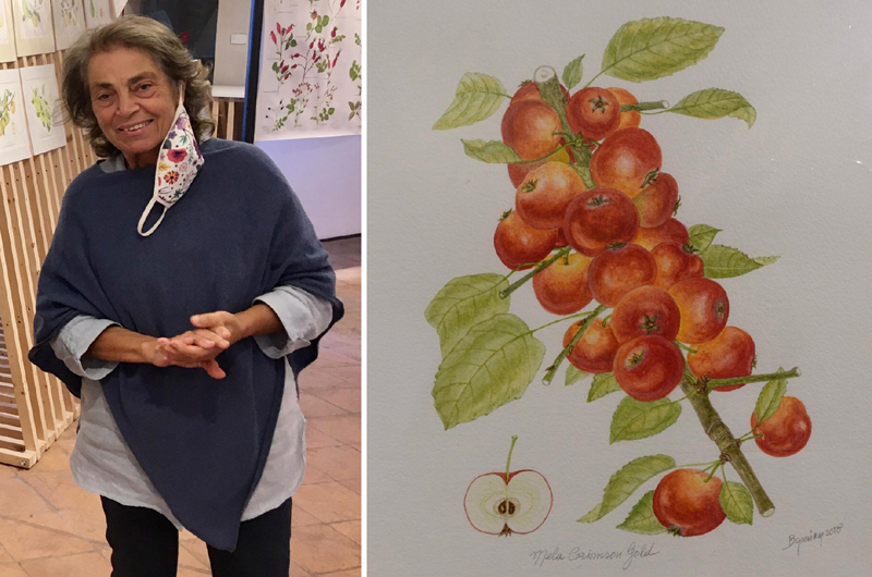 La ritroviamo al Palazzo dei Priori di Narni, piccolo antico scrigno dell’Umbria, per la sua mostra “Le Rosaceae”, dal 3 al 12 ottobre . Le Rosaceae come quelle antiche varietà di pere, mele d’Italia e cinorrodi, un contributo iconografico alla salvaguardia della biodiversità .