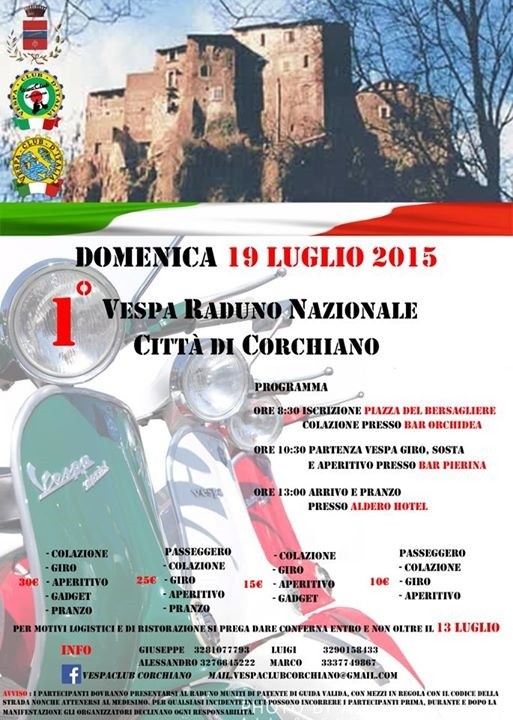 Sono trascorsi  settant’anni, ma è rimasta un simbolo indelebile per gli italiani. Si tratta della mitica vespa, icona degli anni spensierati del boom economico. Per ricordare questo mito a Corchiano domenica 19 luglio è in programma il primo Vespa raduno nazionale.