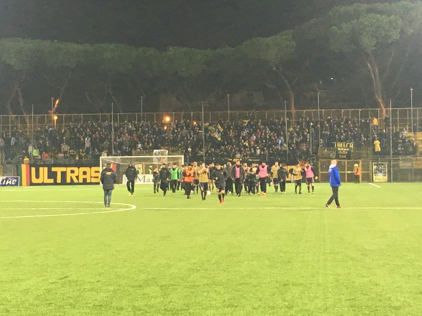 CASTELLAMMARE DI STABIA – Ci rimane veramente difficile commentare una sconfitta così pesante dopo una prestazione onorevole condotta dai gialloblù fino alle battute finali. Rimangono però impietosi i numeri che ci parlano di una sconfitta pesante, anche se amplificata nelle battute finali, che è la quarta in cinque partite, una sterilità offensiva che inizia a preoccupare e una fragilità psicologica sotto gli occhi di tutti. PERSECUZIONE – Tutto nasce però dal “peccato originale” di Gariglio che regala ai padroni di casa all’ultimo minuto del primo tempo un calcio di rigore inesistente come poi dimostreranno le immagini televisive, la madre degli errori che condiziona la partita. E qui torniamo sul solito dibattito malafede-incompetenza che non ci darà mai una risposta, tale è stata la svista che ha incanalato poi il proseguo della partita. Nonostante le avversità i ragazzi di Sottili hanno comunque giocato a viso aperto contro la neo capolista del campionato fino allo sbandamento finale, atteggiamento questo che non è andato giù al tecnico gialloblù. La sensazione è quella di una lotta contro i mulini a vento, situazione questa sottolineata anche dal tecnico oltre che da diversi addetti ai lavori. Tradotto in parole povere c’è la sensazione che ci sia una sorta di persecuzione nei confronti della squadra di Camilli reo solo di aver cercato una sacrosanta giustizia calpestata dai poteri forti del calcio italiano.