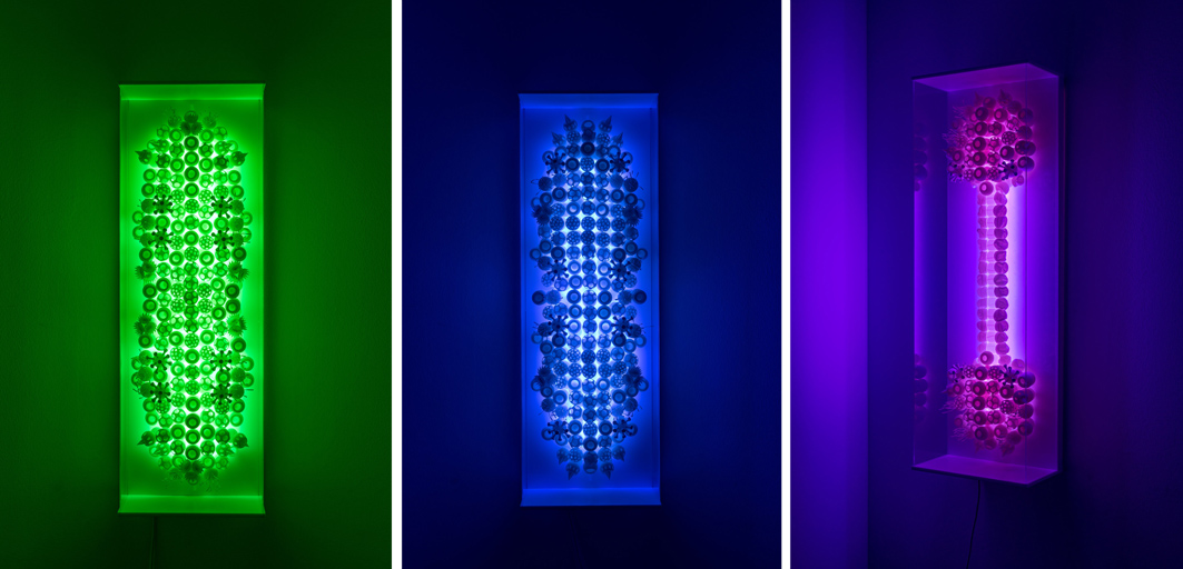 Il risultato è un lavoro in site specific in cui le opere, pur di forma tridimensionale, sono appese ai muri come quadri, retroilluminate da un led, e cambiano colore in sincronia con i temi di una composizione musicale inedita, ispirata alla celebre sinfonia n. 8 di Franz Schubert, “Incompiuta”, a cui fa riferimento il titolo della mostra.