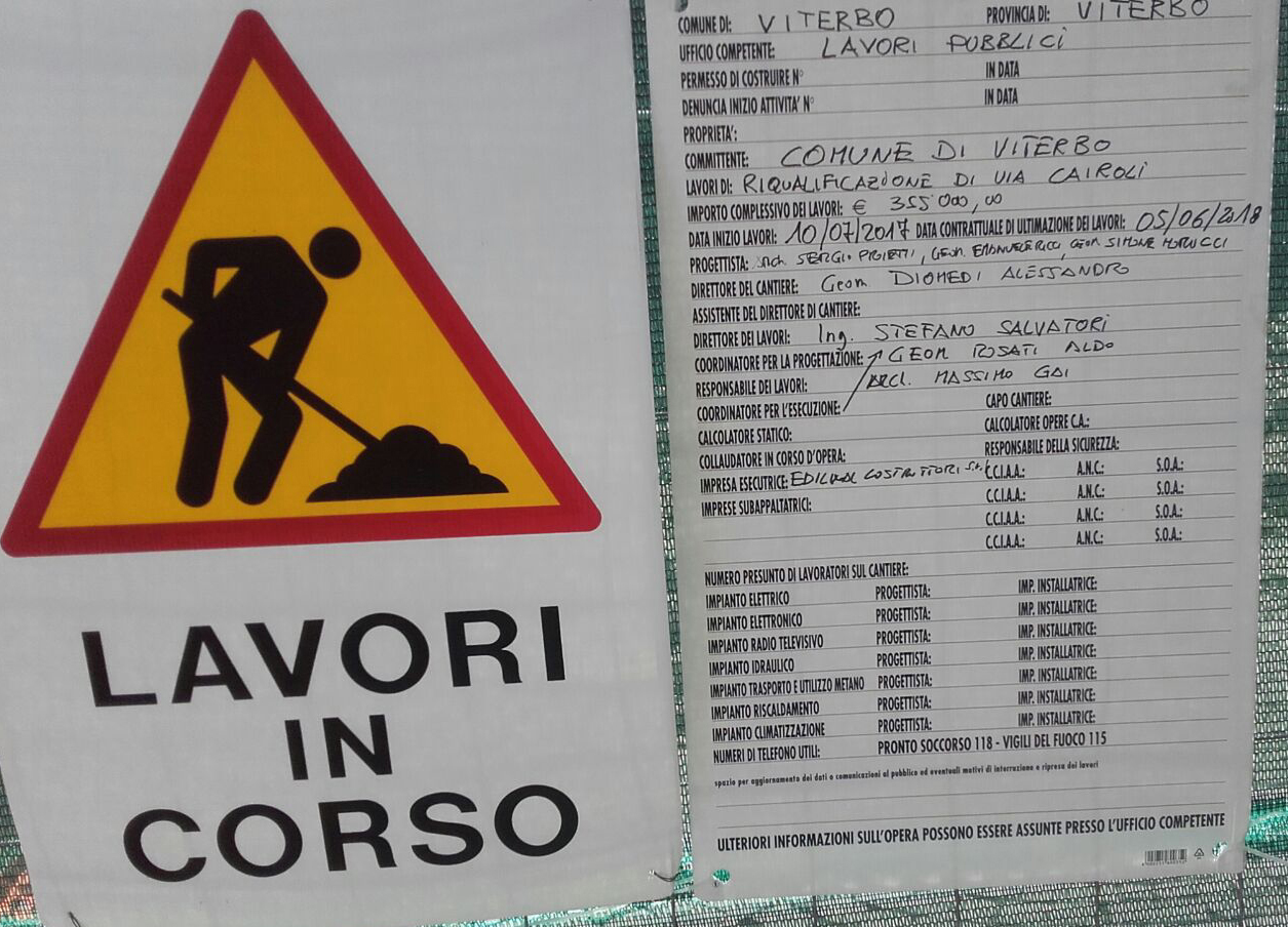 Attraversandola oggi  la via piĂš colorata di Viterbo, arteria di quel quartiere San Faustino ormai paragonato al multietnico Esquilino romano per la numerosa presenza di  residenti stranieri, pare come ad un tratto essersi paralizzata. Tutto si è fermato. Il cantiere aperto il 10 luglio  faceva ben sperare che avviato,  in una fase di estiva, procedesse spedito nell’avanzamento dei lavori.  L’assessore ai lavori pubblici assicurava ”Nuova vita per via Cairoli a Viterbo garantendo al tempo stesso l’accessibilitĂ  per le attivitĂ  economiche e i residenti”. E i commercianti tra i quali si annoverano attivitĂ  storiche come La Padula,  la tabaccheria di Saul Pallotta, la Famarcia Fortini, la pasticceria Casantini e le tante altre che rappresentano il fulcro commerciale di una zona ad alta densitĂ  di passaggio pedonale e automobilistico, nel giro di 10 giorni hanno dovuto constatare, che i lavori da parte della ditta appaltatrice non viaggiano spediti ma sono molto a rilento, e i clienti non si fanno giĂ  piĂš vedere.