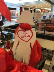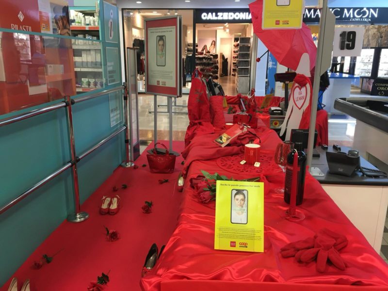 «Come Unicoop Tirreno siamo sempre vicini al tema del sociale e ancora di più a questa tragedia che vede di anno in anno aumentare i casi di femminicidio. Nel punto vendita dell’Ipercoop abbiamo voluto testimoniare fisicamente questa giornata. L’idea di una cassa “vestita di rosso”, con i piccoli oggetti che fanno parte della quotidianità femminile, strappati via nel momento in cui una donna viene uccisa, abbiamo pensato potessero essere un richiamo visivo concreto per tutti i nostri clienti», ha spiegato Lilli Di Cristofaro capoarea del Viterbese. Allestimento di Sonia Marozzi, Visual Merchandiser.