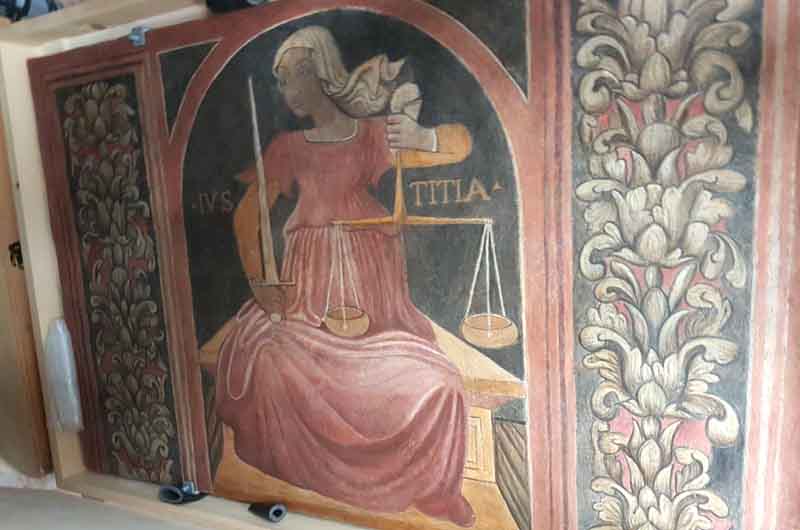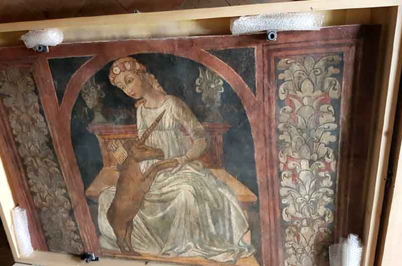 Sparite da palazzo Spreca, ricomparse in un’asta pubblica nella Capitale, sequestrate ad un antiquario spoletino, trasferite di nuovo a Viterbo, ammirate in due mostre, depositate in una fredda ed umida sala del civico Museo,  pronte per tornare in Umbria. Le peripezie delle “Virtù Profane” sono invischiate da sei anni in un dannato valzer che coinvolge anche il Comune di Viterbo e l’antiquario spoletino, protagonisti di uno spigoloso per quanto lungo confronto giudiziario sulla proprietà delle opere. In sintesi, gli affreschi del XV° secolo che abbellivano lo storico immobile di proprietà comunale di via Santa Maria Egiziaca fatti sequestrare a Spoleto dalla magistratura nel 2012 a Spoleto dovranno tornare. E non per un bizzarro disguido della sorte, ma in base a una precisa ordinanza del Tribunale di Viterbo e subito accolta formalmente da palazzo dei Priori che lo scorso 2 novembre ha chiesto al titolare della ditta Umbria Sud, Emo Antinori Petrini, in qualità di nuovo ”custode delle 14 pitture”, di “effettuare con la massima sollecitudine il prelievo degli affreschi”. Un invito reiterato due giorni dopo dal sindaco Arena e resosi necessario per “consentire l’esecuzione degli improcrastinabili lavori di ristrutturazione (della sala museale; n.d.r.) per ragioni di sicurezza necessari ed urgenti”. In effetti il locale dove gli affreschi, ormai da anni, sono custoditi a terra e in teche di compensato è tutt’altro che idoneo ad una adeguata e dignitosa conservazione. L’ultimo atto è del 9 novembre: il Comune informa la Procura d Viterbo e la Soprintendenza Archeologia e Belle Arti che l’antiquario preleverà a breve gli affreschi. Precisamente dalle ore 9 di venerdì 16 novembre. Senza entrare nel merito dell’iter giudiziario, dal carteggio si può dedurre almeno che Emo Antinori Petrini intanto è stato nominato curatore delle Virtù Profane e che queste torneranno dove sono partite. Il loro futuro? Chissà. Il valzer non è ancora finito e fa immaginare altri vorticosi giri sulla pista fin troppo ampia e accogliente come quella viterbese.