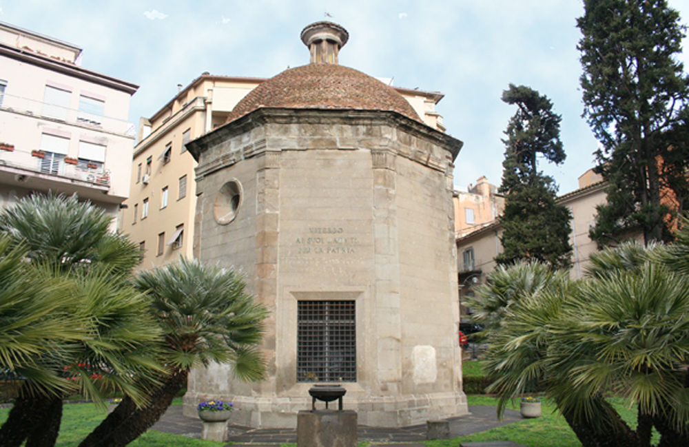La piccola chiesa fu fu eretta come ringraziamento alla Vergine dopo la scomparsa dell’epidemia di peste; divenendo successivamente il monumento ai Caduti, ovvero il Sacrario di Viterbo.