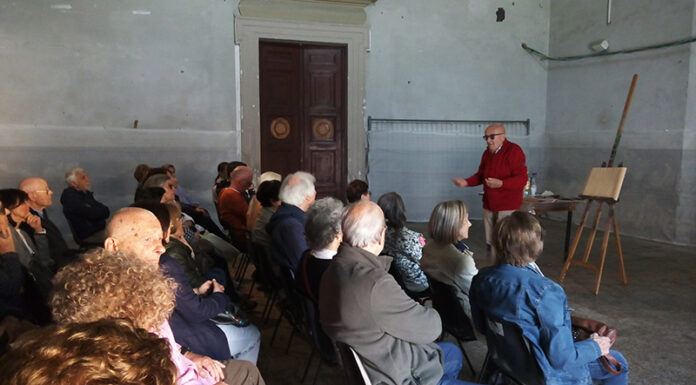 La visita è stata preceduta da una breve presentazione dell’iniziativa “Aperta per noi” da parte del console Touring Vincenzo Ceniti che ha ricostruito le vicende degli ultimi anni, dal 2017 quando, al tempo della giunta Michelini (assessore competente Luisa Ciambella), venne rilasciato all’artista Marco Zappa il permesso di accesso per realizzare le tele sul Giudizio, oggi in corso di ultimazione.