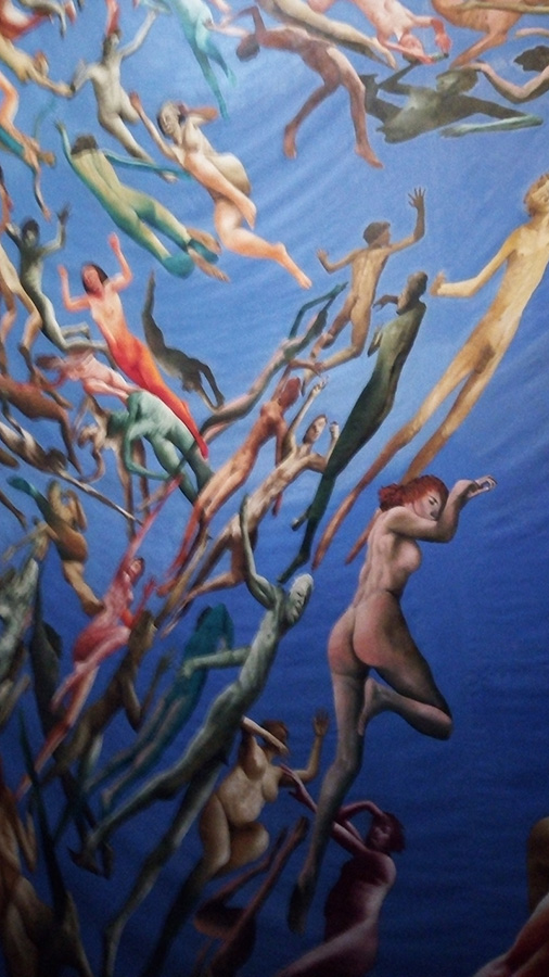 Il risultato, seppur parziale, è di grande impatto visivo. Si tratta di un “Giudizio” laico, senza i personaggi della tradizione, in cui ogni religione si può riconoscere, poiché il bene e il male sono universali. Siamo in tema di “dinamismo futurista”. che avviene attraverso la deformazione dei corpi umani realizzati con più punti di vista che modificano le forme senza scomporle. Il colore non ha una logica naturalistica: i corpi non sono uniformemente colorati, ma seguono i movimenti della luce e i diversi piani prospettici. Ne risultano immagini apparentemente viste attraverso lenti deformanti che sono la concettualizzazione del modo di vedere dell’occhio umano.