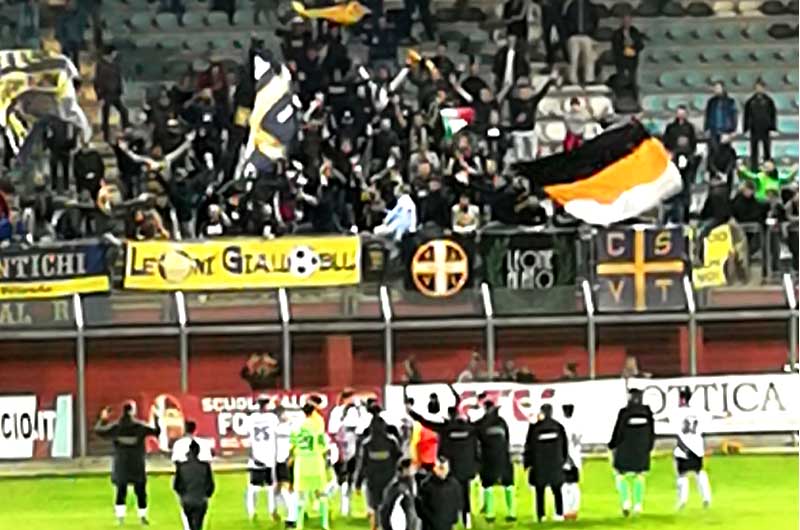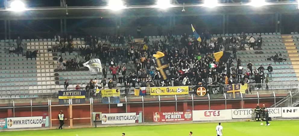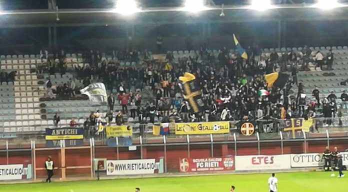 RIETI – La peggior Viterbese mai vista quest’anno cede senza l’onore delle armi al Rieti che di coraggio, determinazione e voglia di lottare ne ha messe veramente tante in campo. Nessuno poteva aspettarsi una sconfitta così pesante oltre che per il punteggio soprattutto per il divario visto sul terreno di gioco tra le due squadre. I padroni di casa nel loro momento più difficile si sono compattati formando una squadra granitica che la piccola viterbese vista all’opera non ha minimamente scalfito. Su una cosa siamo d’accordo e cioè che questa sconfitta non può certo cancellare il brillante campionato che sta tirando avanti la pattuglia di Lopez ma che è difficile da digerire per il modo come è arrivata, senza lottare, senza opporre la minima resistenza, insomma la squadra si è sciolta in appena venti minuti spianando la strada agli arrembanti padroni di casa. Il tecnico gialloblù si era schierato a specchio contro l’undici di Caneo, all’esordio sulla panchina amaranto-celeste, per poi modificare più volte in corsa uomini ed assetto tattico senza tuttavia trovare la soluzione giusta. Ribadiamo che la classica serata storta ci può stare a patto che rimanga un episodio isolato e fine a se stesso per riprendere già domenica pomeriggio il cammino in campionato contro la Sicula Leonzio. Salvare qualcuno in una serata del genere ci risulta decisamente difficile, tutta la squadra ha giocato senza mordente, con scarsa attenzione soprattutto nella fase iniziale quando ha spianato la strada ai padroni di casa con reti che si potevano benissimo evitare. “Chiedo scusa a tutti i tifosi che hanno cantato e sostenuto fino al novantesimo – afferma un deluso Diego Foresti, direttore generale della Viterbese ai microfoni di Diretta Sport Viterbo – prestazione indegna della maglia, non ci sono spiegazioni o alibi. Non puoi venire a giocarti un derby in questo modo, loro avevano fame e ci hanno surclassato dal primo all’ultimo. Cerchiamo di chiudere velocemente questa parentesi perchè non ricordo una prestazione cosi indegna di questa squadra. Loro hanno viaggiato in pullman, venti ore di viaggio e tanto di cappello a loro, non parliamo poi del lato tecnico perché non c’è neanche da discuterlo, perché non c’è stata partita, sono basito, non sono riuscito a rimanere in panchina fino alla fine, mi dispiace, dopo la partita di sabato non ci sono spiegazioni. Non ho mai visto la mia squadra così, non siamo mai stati in partita, non trovo anche le parole per definirla, stanotte è dura, non ci si dorme dopo una partita così, poi da domani pensiamo alla Sicula però sono veramente basito dalla partita della squadra.”