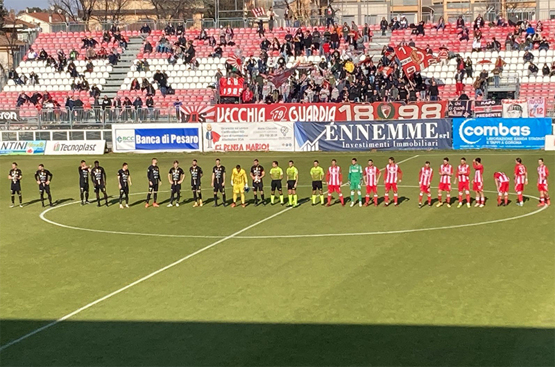 VIS PESARO (3-5-2): Farroni; Gavazzi, Di Sabatino (35′ st Piccinini), Ferrini; Eleuteri (20′ st Sanogo), Acquadro, Coppola (20′ st Lombardi), Rossi (1′ st Saccani), De Nuzzo; Cannavò, Silenzi (35′ st De Respinis). A disposizione: Campani, Manetta, Astrologo, Besea, Accursi, Rubin, Eleuteri, Bocci. Allenatore: Banchini.