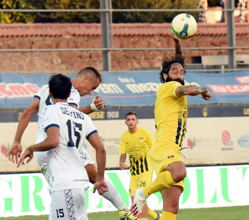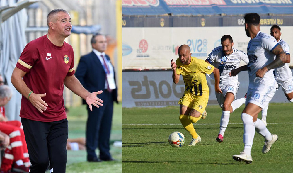 Gara ribaltata in tre minuti per i locali, ma il finale è al cardiopalma e per la Viterbese è una beffa tremenda. Al minuto 94’, dopo che Riggio aveva lasciato i locali in dieci, palla perfetta di Candellori per Paolini che sul filo del fuorigioco incrocia e batte Fumagalli. Panchina della Viterbese infuriata per un presunto off-side del giocatore pugliese, ma proprio all’ultimo istante (minuto 98’) Fumagalli è straordinario a dire di no sulla conclusione a tu per tu di Sipos e sulla ribattuta di Paolini.