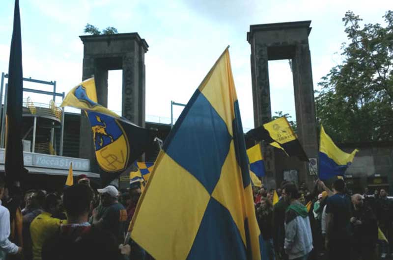 Il primo incrocio risale al 19 settembre 1976 e la gara terminò con il punteggio di 1 a 1. Dopo il vantaggio ospite con Frutti, i gialloblù trovarono il pareggio con Rakar.