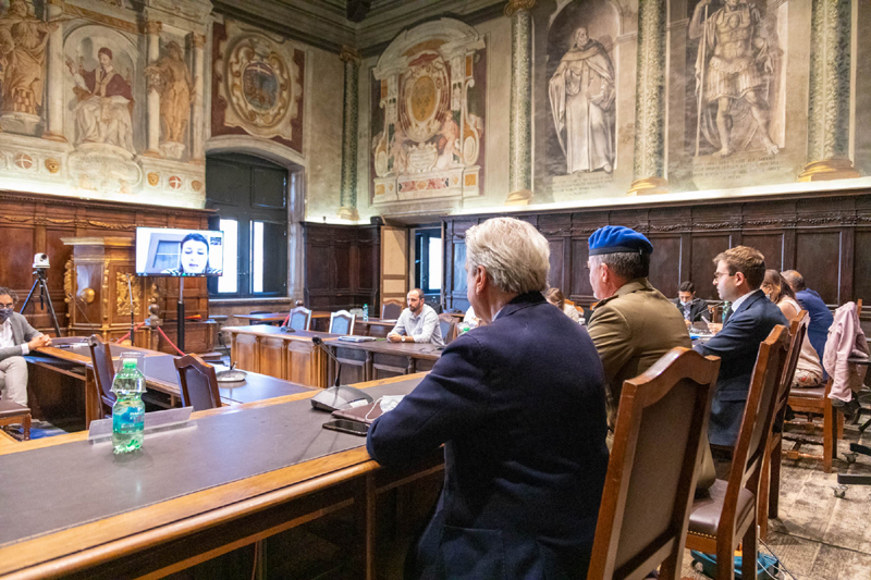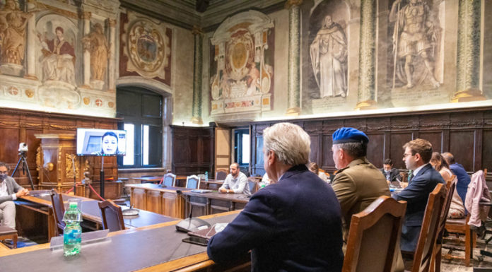 Viterbo 18 giugno 2020. Questo pomeriggio, nella sala d’Ercole del Comune di Viterbo, il Sindaco Giovanni Maria Arena, alla presenza di tutto il consiglio Comunale (in parte presente in sala e in parte in videoconferenza), ha consegnato al Comandante dell’Aviazione dell’Esercito, Paolo Riccò, la Cittadinanza Onoraria all’Aviazione dell’Esercito con l’iscrizione della stessa all’Albo d’Oro della Città.
