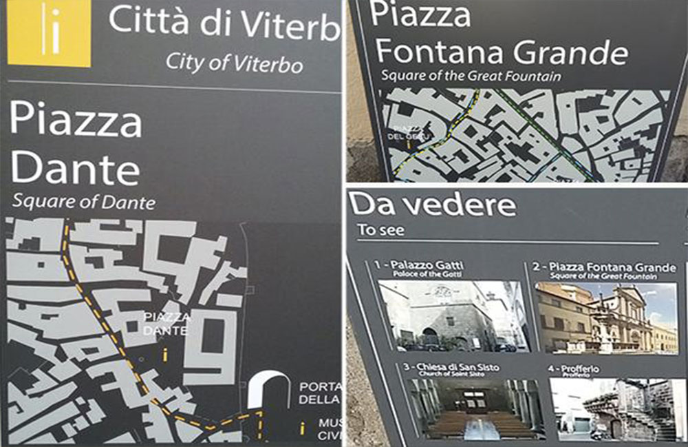 La città di Viterbo vanta un patrimonio artistico medioevale non ancora conosciuto e apprezzato in tutta Italia e all’estero. Complice una politica locale che non ha fatto del Turismo il primo obiettivo, sottovalutando quella che potrebbe esssere una preziosa risorsa per tutto il territorio. In compenso nel momento in cui si cerca di offrire un servizio ai visitatori, l’inglese maccheronico che regna sui nuovi totem turistici in prossimità di piazze e monumenti, oltre a tener banco tra i residenti, si è conquistato le pagine di uno dei primi giornali nazionali Il Corriere delle Sera. Ecco l’articolo dedicato ai pannelli appena installati dal Comune.
