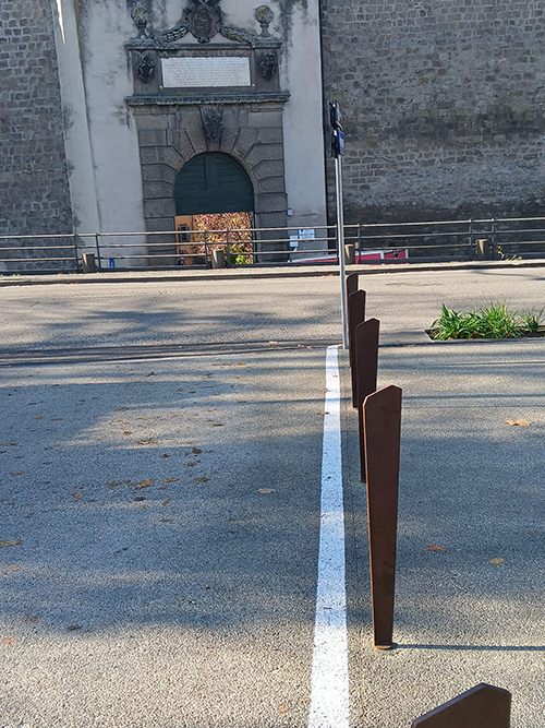 “Nei tempi previsti piazza Crispi è stata restituita a residenti e automobilisti con un rinnovato look e una viabilità maggiormente sicura”. Così, in una nota, l’11 settembre scorso Palazzo dei Priori annunciava il simbolico taglio del nastro, dopo il restyling di un’area tra le più importanti della città, non fosse altro perché su di essa si affacciano il museo civico e la storica chiesa della Verità. Operazione, in effetti, faticosa e difficile in quanto discussa e discutibile. Tant’è. L’estetica però, nel caso specifico, rischia di diventare anche sinonimo di pericolosità, causa la singolare e bizzarra idea di delimitare gli spazi percorribili con aste in ferro color ruggine. La loro funzione dovrebbe essere quella di segnalare gli spazi riservati ai pedoni, alle auto, agli scooter e a qualsiasi altro mezzo di locomozione, ma in pratica rischiano di diventare un barrage ad alto rischio per coloro – soprattutto motorini – che si muovono sulla piazza con grande frequenza. Soprattutto in concomitanza con l’apertura e la chiusura delle scuole.